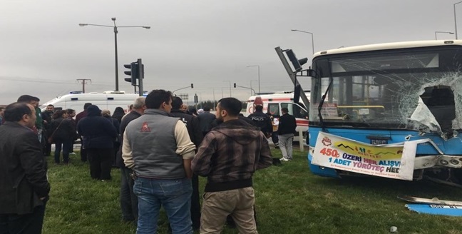 HALK OTOBÜSÜ TIRLA ÇARPIŞTI