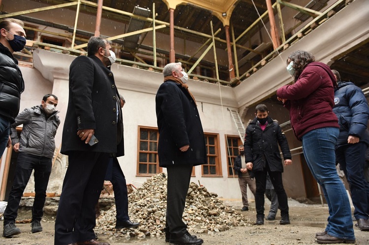 Belediye Başkanı Dr. Halil İbrahim Aşgın, Veli Paşa Hanı’nda başlatılan restorasyon çalışmalarını yerinde inceledi, yetkililerden bilgi aldı.
