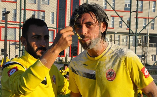 Çorum Belediyespor’un tecrübeli savunma oyuncusu Samet Cantürk, 30 yaşına girdi. Yapılan antrenman sonrasında Samet için doğum günü kutlaması yapıldı. Tecrübeli futbolcu da Çorum Belediyespor’da geleneksel hale gelen un ve yumurtalı kutlamadan nasibini aldı.