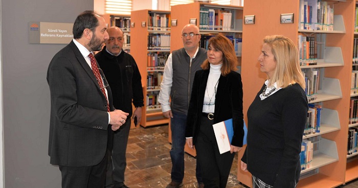“Üniversite Kütüphanemiz içerisinde, engelli kullanıcılarımızın ihtiyaç duydukları bilgiye daha kolay ve daha çabuk erişimlerini sağlamak amacıyla Eye Pad tarama sistemi kurulmuştur. Bu sistem ile basılı her türlü materyal taratılarak, görme engelli kullanıcılarımıza sesli olarak okunması sağlanmaktadır. Görme engelli kullanıcılarımız için tahsis edilen bilgisayarda yüklü bulunan Jaws 13 programı ile mevcut sesli kitaplar, bilgisayar ve internet ortamında yine kendilerine sesli olarak okunmaktadır. Üniversitemiz ile Boğaziçi Üniversitesi Görme Engelliler Eğitim ve Teknoloji Laboratuvarı (GETEM) arasında yapılan protokol ile de görme engelli kullanıcılarımız, Merkez Kütüphaneden alacakları bir şifre ile GETEM’ de bulunan binlerce sesli kitaba erişebilmektedir. Diyanet İşleri Başkanlığınca hazırlanan “Braille Kur’an-ı Kerim Elif-Ba’sı” isimli eser, görme engelli kullanıcılarımızın hizmetine sunulmak üzere Üniversitemiz Kütüphanesi ile İlahiyat Fakültesi kütüphanesi koleksiyonuna dahil edilmiştir. Diyanet İşleri Başkanlığının engelli vatandaşlarımıza yönelik yapmış olduğu çalışmalar kapsamında hazırlanan Elif-Ba ile birlikte Braille alfabesiyle hazırlanan “Kur’an-ı Kerim (6 ciltlik), 40 Hadis, Seçme Dualar” gibi bazı eserler de kütüphanemiz de kullanıcı hizmetine sunulmuştur. Kütüphanemiz, Sosyal Yaşam ve Kültür Merkezindeki yeni yerinde, zengin basılı kaynakların yanı sıra her türlü teknolojik donanımın sağlanması ile çeşitli görsel ve işitsel iletişim araçlarının kullanıldığı zengin dijital kaynakları ile de tüm kullanıcılarımıza engelsiz bir şekilde hizmetlerini vermeye ve gelişmeye devam etmektedir.”
