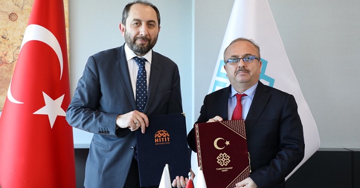 Hitit Üniversitesi ile Türkiye Maarif Vakfı arasında eğitim, araştırma, akademik çalışma, raporlama ve kültürel alanlarda iş birliği kurulması amacıyla “Akademik, İş Birliği ve Tanıtım Protokolü” Türkiye Maarif Vakfı Başkanı Prof. Dr. Birol Akgün ve Hitit Üniversitesi Rektörü Prof. Dr. Reha Metin Alkan tarafından imzalandı. İşbirliği protokolü imza töreninde Türkiye Maarif Vakfı Başkan Vekili Osman Nuri Kabaktepe, Mütevelli Heyet Üyeleri Doç. Dr. Cahit Bağcı, Prof. Dr. Ahmet Emre Bilgili ve Selim Cerrah hazır bulundu. Yapılan protokol ile taraflar yurt içi ve yurt dışında yürüttükleri her türlü eğitim faaliyeti, akademik araştırma, bilgi-belge paylaşımı, müfredat materyal temini, yurt dışında bulunan üniversitelerle ortak program, yurt içi ve yurt dışındaki personel için eğitim çalışmalarına katkı sağlama gibi konularda iş birliğine vardı. Törende açıklamalarda bulunan Rektör Prof. Dr. Reha Metin Alkan, ülkemizin başta gönül coğrafyası olarak adlandırılan Türk Cumhuriyetlerindeki ülkeler ile Kuzey Afrika ve Balkan coğrafyası olmak üzere dünyanın dört bir yanından, çok sayıda öğrenciyi çekme potansiyeline sahip olduğunu ifade ederek Üniversitemizin de bir dünya üniversitesi olma yolunda önemli ve ciddi adımlar attığını belirtti. “Yapılan protokol ile birlikte Üniversitenin bundan sonraki Uluslararası Eğitim faaliyetleri kapsamında gerçekleştirilecek çalışmaların Türkiye Maarif Vakfı’nın destekleriyle ve katkılarıyla daha profesyonel biçimde yapılacağına kalpten inanıyorum” diyen Alkan, Üniversiteye verdikleri desteklerden dolayı başta Türkiye Maarif Vakfı Başkanı Prof. Dr. Birol Akgün olmak üzere emeği geçen herkese teşekkür ederek protokolün hayırlı olmasını temenni etti. Türkiye Maarif Vakfı Başkanı Prof. Dr. Birol Akgün de iki kurumun yaptığı anlaşmanın eğitimin uluslararasılaşmasına önemli katkılar sağlayacağını belirterek iş birliğinden dolayı Rektör Prof. Dr. Alkan’a teşekkür etti.