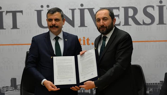 Hitit Üniversitesi’nde Mesleki Eğitimde İş Birliği Protokolü İmzalandı. Protokol ile Üniversite öğrencileri, işyerlerinde eğitim alacak. Rektörlük Senato Salonu’nda düzenlenen imza törenine Çorum Valisi Mustafa Çiftçi, Hitit Üniversitesi Rektörü Reha Metin Alkan ve meslek odalarının başkanları katıldı. Hitit Üniversitesi Rektörü Reha Metin Alkan ‘3+1 işyeri modeli’ni Çorum’da hayata geçireceklerini belirterek, projenin meslek yüksekokulu bünyesinde uygulanacağını açıkladı. Alkan, Çorum’da sanayi-üniversite işbirliği kapsamında önemli bir çalışma olacağını dile getirdi. Çorum Valisi Mustafa Çiftçi’de açıklamasında mesleki eğitimin önemine işaret etti. Çiftçi ” Çorum Valiliği olarak şehrimizin harına olan her çalışmayı destekliyoruz” dedi. Vali Çiftçi’nin konuşmasının ardından ‘3+1 işyeri modeli’ hakkında detaylı bilgiler verildi. Konuşmaların ardından Vali Mustafa Çiftçi, Hitit Üniversitesi Rektörü Reha Metin Alkan, Ticaret ve Sanayi Odası Başkanı Çetin Başaranhıncal ve meslek odalarının başkanları, Mesleki Eğitimde İş Birliği protokolünü imzaladı.