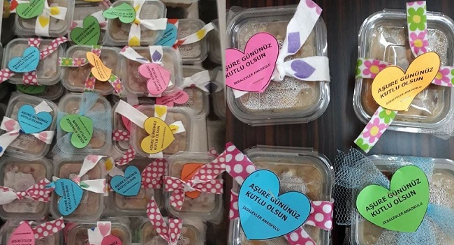 Çorum İkbalevler Anaokulu’nda Muharrem Ayı dolayısıyla “ Aşure Günü” etkinliği düzenlendi. Etkinlik çerçevesinde “Aşure Gününüz Kutlu Olsun” yazısı ile birlikte paketlenmiş olan aşureler okula gelen veliler ve miniklere ikram edildi. Okul öğretmenlerinin katkısı ve okul ahçıları tarafından hazırlanan aşurelerin ikram edilmesi veliler tarafından sevinçle karşılandı. Bu etkinliğin okul personeli ve velilerin kaynaşması açısından faydalı olduğunu belirten Okul Müdürü M.Serdar Yalçın, Aşure Gününün, paylaşmanın, birlikteliğin, sevginin, bolluk ve bereketin simgesi olduğunu ifade etti. İkbalevler Anaokulu olarak yöneticisiyle, öğretmeniyle, velisiyle kocaman bir aile olduklarının altını çizen Okul Müdür Yardımcısı Leyla Külcü, yaptıkları aşure günü etkinliği ile iyiliğe, güzelliğe ve paylaşmaya bir nebze de olsa vesile oldukları için mutlu olduklarını kaydetti. Külcü, bu etkinliğin amacının aşure geleneğini yaşatmak ve minik öğrencilere de bu geleneği öğreterek sevdirmek olduğunu belirtti.