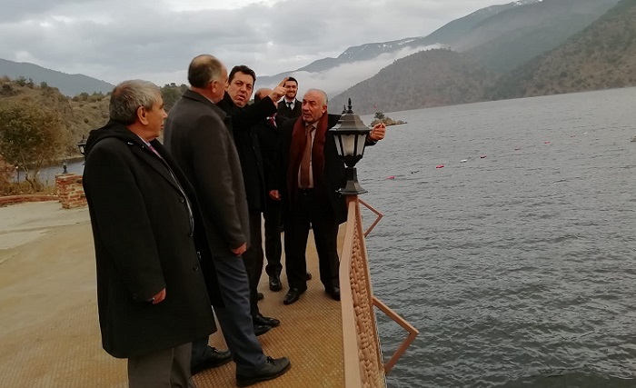 İl Genel Meclis Başkanı Osman Günay ve İl Genel Meclis Üyeleri Ünal Nalçacı, Mehmet Bektaş Oğuzlar’a ziyarette bulundu. İl Genel Meclis Başkanı ve İl Genel Meclis Üyeleri Oğuzlar Belediye Başkanı Muzaffer Yıldırım’a, Oğuzlar Kaymakamı Onur Titiz’e, Oğuzlar’a yeni atanan İlçe Milli Eğitim Müdürü Özcan Kuşcu’ya makamlarında gerçekleştirdikleri ziyaretin ardından AK Parti İlçe teşkilatına ziyaret gerçekleştirerek istişarede bulundular. Oğuzlar Belediye Başkanı Muzaffer Yıldırım ve Oğuzlar İl Genel Meclis Üyeleri Arif Çamiçi ve Abdullah Tiryaki’nin de iştirak ettikleri kurum ziyaretlerinin akabinde Oğuzlar Belediye Başkanı Muzaffer Yıldırım tarafından İl Genel Meclisi Başkanı Osman Günay ve İl Genel meclisi üyelerine Obruk Barajı üzerinde yer alan Altın Koz Sosyal Tesislerinde; Oğuzların turizm potansiyelinin arttırılması için sahil yolunun gerekliliği ve kıyı kenarı çizgisi hakkında bilgi verildi. Projeleri ve bunların hayata geçmesinin ehemmiyetini aktaran Yıldırım; “Sahil Yolu Projesi ilçemizin kabuğunu kırıp turizm potansiyelini arttırması için elzem bir projedir. İlçemizin çevre ilçelerle ulaşım ağının gelişmesi ile hem Oğuzlarımız hem de çevre ilçelerimiz hep birlikte gelişecek ve bu gelişim ile birlikte Çorumumuz büyüyecek. Sahil Yolu projemizin hayata geçmesi bölgemizin kaderini değiştirecek. 12 milyon metre küp hacmi ile Türkiye’nin en geniş gövdeli barajları arasında yer alan; bölgemize adeta bir yapay deniz ortamı yaratan Obruk Barajımız ve muhteşem doğamızın birlikteğiyle Oğuzlarımız Saklı Cennet konumunda. Sahil yolunun yapılması ile bu saklı cennet herkesin bildiği bir cennet haline dönüşecek. Sahil şeridi boyunca yapılacak kıyı şeridi çizgisi ile de Obruk Barajı kenarına turizm altyapısını güçlendirmeye yönelik çalışmalar yapılabilecek. Sahil Yolu ve kıyı çizgisi çalışması bölgemizin bacasız sanayi turizm ile gelişebilmesi için elzemdir. “şeklinde açıklamalarda bulundu.