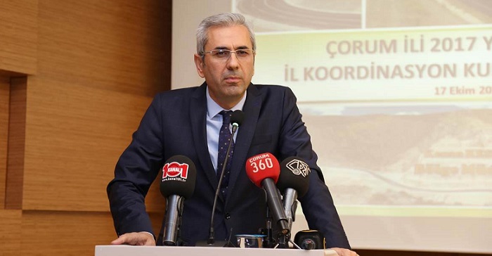 İl Koordinasyon Kurulu Vali Necmeddin Kılıç’ın başkanlığında Çorum Belediyesi Turgut Özal İş Merkezi Konferans Salonunda toplandı. Toplantıya Vali Necmeddin Kılıç, Vali Yardımcısı Turan Soğukoluk, İlçe Kaymakamları, Belediye Başkanları, Kamu Kurum ve Kuruluşlarının Bölge ve İl Müdürleri katıldı. Vali Necmeddin Kılıç, Çorum’un yatırımlar açısından oldukça parlak bir dönemi yaşadığını ve 2017 yılı yatırımlarının proje tutarının % 43 artışıyla 3,5 milyar TL’ye ulaştığını belirterek eski dönemlerde tamamlanması uzun yıllar alan yatırımların günümüzde hızlı bir şekilde programlanıp yapımının tamamlandığını ve vatandaşın hizmetine sunulduğunu belirtti. Toplantıda yatırımcı kamu kurum ve kuruluşlarının yetkililerince uyguladıkları projelere ilişkin sunumlar yapıldı. Çorum genelindeki tüm yatırımlar değerlendirildi. Ayrıca koordinasyonu gerektiren konular karar altına alındı.