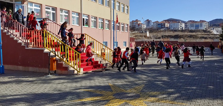 İsmail Kakaç İlkokulu’nda afet bilincinin oluşması yönündeki çalışmalar kapsamında gerçeğini aratmayacak film gibi bir yangın, kurtarma ve deprem tatbikatı gerçekleştirildi. Çorum Belediyesi İtfaiye Ekipleri’nin katıldığı tatbikat, sirenlerin çalması ile başladı. Siren sesi ile birlikte öğrenciler sınıfları boşaltarak kısa sürede bahçeye indi. Tahliye tatbikatının ardından kurtarma tatbikatı yapılarak, tatbikat gereği binada yaralanan ve mahsur kalan öğrenciler itfaiye merdiveni açılarak binadan çıkarıldı. Okulun bahçesinde toplanan öğrenci ve öğretmenlere, Okul Müdürü Ender Özcan Özçakır tarafından afetlerin insani kusurlardan olabileceği gibi doğal şartlarla da gerçekleşebileceği, afet öncesinde alacağımız tedbirler ve afet sonrasında yapacağımız müdahalelerin hayati derecede önem taşıdığı ifade edildi. Özçakır “Afetler can almaz, bilgisizlik ve tedbirsizlik can alır. Biz gerekli önlemleri önceden alırsak, afet sırasında ve sonrasında yapmamız gereken temel davranışları bilirsek afetten en az zararla kurtulabiliriz. Birazdan yangın tüplerinin nasıl kullanılacağını, hangi yangına nasıl müdahale edileceğini hep birlikte izleyeceğiz” diyerek öğrencilere uyarılarda bulundu. Çorum Belediyesi İtfaiye ekipleri ve okul yangın söndürme ekibi, uygulamalı olarak yangın tüpleri ile yangına müdahale ederek, olası bir yangında yapılacakları tatbik etti. Öğrencilerin heyecan ve ilgiyle takip ettiği tatbikat başarılı bir şekilde sona erdi.