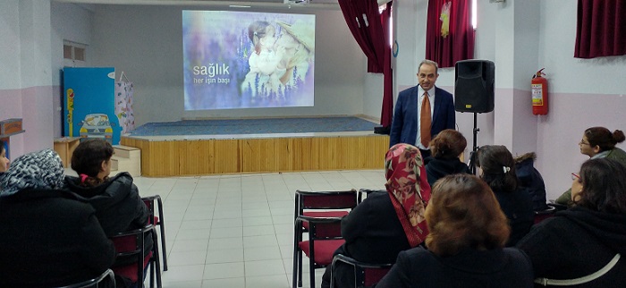 Bu nedenle sağlığımızı korumak için bilinçli olmalı ve çocuklarımıza bu konuda model olmalıyız. Biz okul olarak bu konuyu önemsiyoruz. Okulumuz hem beyaz bayrak sahibi hem de beslenme dostu okul. Amacımız çocuklarımızda sağlıklı yaşam ve beslenme kültürü oluşturmak. Çocuklarımızı bu konuda bilinçli yetiştirir ve onlara uygun bir model olabilirsek onların hayatı için en büyük yatırımı yapmış oluruz.” dedi. Sunumu gerçekleştiren Okul Rehberlik Öğretmeni Caner Turan, ‘Sağlıklı yaşamın yolları, sağlıklı beslenme, kişisel bakım, bağımlılıkla mücadele, hastalıklardan korunma ve hastalıkları yönetme’ gibi konuları ele aldı.