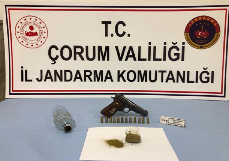 Çorum İl Jandarma Komutanlığı tarafından yapılan operasyonda silah ve uyuşturucu madde ele geçirildi.