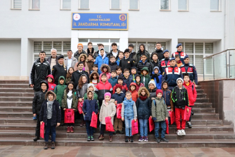 Gençlik ve Spor İl Müdürlüğü öğretmenlerinin organize ettiği, basketbol akademi öğrencileri, Çorum İl Jandarma Komutanlığını ziyaret etti. Öğrencilere, Jandarma Çocuk Dergisi ile boyama kitapları dağıtılarak Jandarmanın tanıtımı yapıldı. Ayrıca Çorum İl Jandarma Komutanlığı envanterinde bulunan devriye-trafik araçlarının tanıtımı yapılarak iz takip, uyuşturucu ve bomba arama köpekleri ile gösteri düzenlendi.