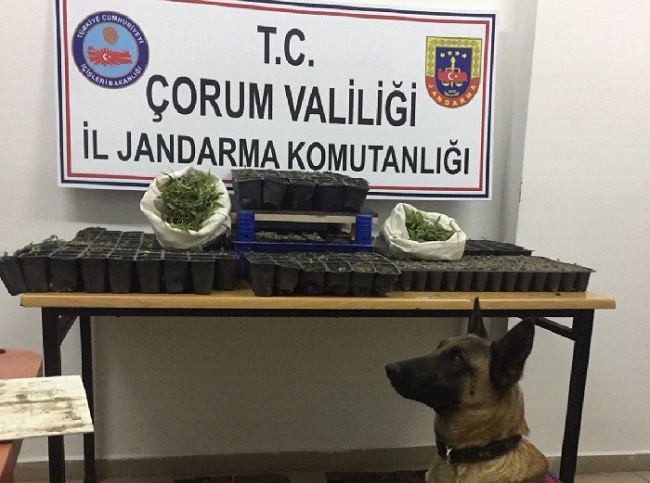 Çorum’un Alaca İlçesinde Jandarma Komutanlığınca yapılan operasyonda yasadışı kenevir ekimi yapan 2 kişi yakalandı. Edinilen bilgilere; Alaca İlçesinde Jandarma Komutanlığınca yapılan operasyonda Küre Köyü Karainlik mevkiinde yasadışı kenevir ekimi yapan şüpheliler; S.Ç. ve H.K. kenevir ekimi yapılan mahalden traktör ile geldikleri esnada yakalandılar. Yapılan kontrolde traktörün arka yük kısmında kenevir bitkilerini sulamak amacıyla kullandıkları boş pet şişeleri, gübre kalıntıları, çapa, kürek gibi bitki bakım malzemeleri ele geçirildi. Cumhuriyet Savcısının talimatı doğrultusunda gözaltına alınan şüphelilerin Küre köyünde bulunan kullandıkları ahırda yapılan aramada; fide biyoloji (fide yetiştirme kabı) içerisinde yetiştirilen 804 kök, küre köyündeki ikametlerinin bahçesinde dikili, 36 kök ve Küre Köyü Karainlik mevkiinde bulunan meşe ormanlarının arasına açtıkları tarlaya dikili vaziyette 741 kök olmak üzere toplam 1577 kök kenevir bitkisi ele geçirilerek el konuldu. Şüpheliler ele geçirilen deliller sonrası Cumhuriyet savcılığına sevk edildi.