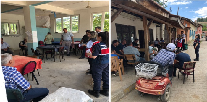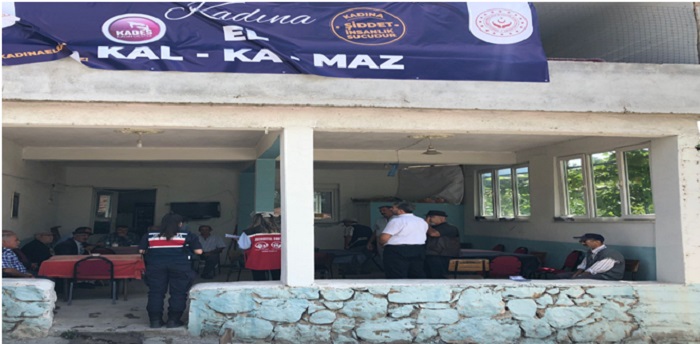 Ayrıca kadına şiddetin ve kadın cinayetlerinin önlenmesi hususunda KADES (Kadın Acil Destek) Uygulamasının önemi anlatılmış ve elektronik kelepçe uygulamasından bahsedilerek broşür dağıtılmıştır. ‘Kadına Şiddet İnsanlık Suçudur” adı altında afiş asılarak şiddet veya şiddet tehdidinin önlenmesi amacıyla Jandarmanın 7/24 görevde olduğu vatandaşlara hatırlatılmıştır” denildi.