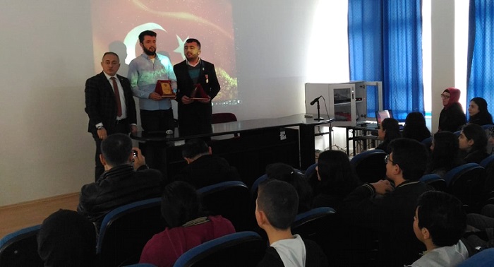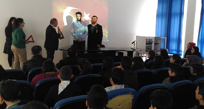 Çorum Mustafa Kemal Ortaokulu tarafından ‘Gazilerimiz Öğrencilerle’ söyleşi programı düzenlendi. Güneydoğuda vatani görevlerini yaparken iki gözlerini de kaybeden kahraman Gaziler Yusuf Şen ve Mesut Filiz, Mustafa Kemal Ortaokulu Konferans Salonunda öğrencilerle buluşarak söyleşi gerçekleştirdi. Türkçe dersi etkinlikleri kapsamında yapılan program sonunda Okul Müdürü Kadir Yuttutar gazilere plaket takdim ederek katılımlarından dolayı teşekkür etti.