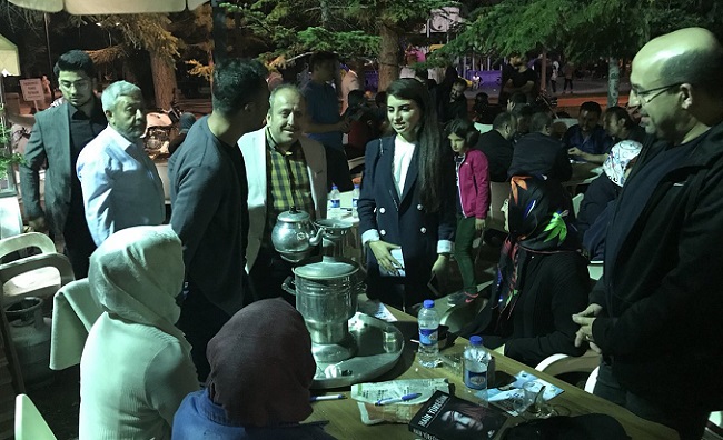 AK Parti Çorum İl Başkanı Mehmet Karadağ, 24 Haziran’da gerçekleştirilecek Cumhurbaşkanlığı ve Milletvekili Genel seçimi çalışmaları kapsamında çay bahçelerini dolaşarak, vatandaşlarla tek tek sohbet yaptı. TSO Fuar Alanında ramazan ruhunu gönüllere işlemek, bereketini ve kardeşlik duygusunu hep beraber yaşatmak adına verilen iftar yemeğinin ardından Çorum’un muhtelif yerlerinde ki çay bahçelerini gezerek, buralarda sahuru bekleyen vatandaşlarla sohbet yaptı. Masaları tek tek gezen Karadağ, vatandaşların onbir ayın sultanı mübarek Ramazan ayının en önemli ve hikmetli gecesi, bin aydan daha hayırlı olan Kadir gecelerini kutlayıp, hayırlı sahurlar dileğinde bulundu. Kimi zaman ayak üstü bazen de vatandaşın daveti üzerine masalarına oturarak koyu bir sohbet gerçekleştiren Karadağ, AK Parti’nin seçim vaatlerini anlattı. Kendisine ilgi gösteren gençlerle çay eşliğinde keyifli sohbet yapan Karadağ, gençlerin sorularına cevap verdi. Gençlerden 24 Haziran yapılanacak seçimler için destek isteyen Karadağ, ”589 yeni yurt yaparak, yükseköğrenim öğrencilerimiz için yurt sayısını 190’dan 779’a, yatak kapasitesini ise 182 binden 629 bine yükselttik ve yatak kapasitemizi 3,3 katına çıkardık” dedi. Burs alan öğrenci sayısının 4 katına çıktığını ifade eden Karadağ, 2002 yılında 450 bin öğrencinin burs alırken, 2018 yılında ise bu sayının 1,6 milyon çıktığını kaydetti. Öğrencilere tanınan sağlık hizmetlerinden de söz eden Karadağ, ”Öğrenim gördükleri okullardan mezun olmaları nedeniyle anne veya babaları üzerinden sağlık yardımı alamayan gençlerimize, 2013 yılında yapılan düzenleme ile ana veya babaları üzerinden sağlıktan yararlanmaları için ilave 120 gün süre tanıdık” diye konuştu.