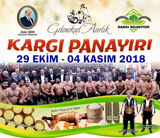 Geleneksel Asırlık Kargı Panayırının tarihi belli oldu. Bu yıl da Kargı Panayırı dolu dolu geçerek sezona damgasını vurmaya hazırlanıyor. 29 Ekim 2018 Pazartesi günü Mehteran Takımı gösterisi ile başlayacak panayır programının açılışı, 30 Ekim 2018 Salı günü öğrencilerin bisiklet yarışı, 31 Ekim Çarşamba günü öğrencilerin atletizm yarışı, 1 Kasım 2018 Perşembe akşam namazına müteakip Mevlid-i Şerif’in okunması, 2 Kasım 2018 Cuma gün boyu panayır alışverişi, 3 Kasım 2018 Cumartesi trap atışı yarışması ve havai fişek gösterisi, panayırın son günü olan 4 Kasım 2018 Pazar günü ise ünlü pehlivanların yağlı güreşleri ile ilçede Kırkpınar havası esecek. Panayır etkinliğine yoğun bir katılım bekleniyor.