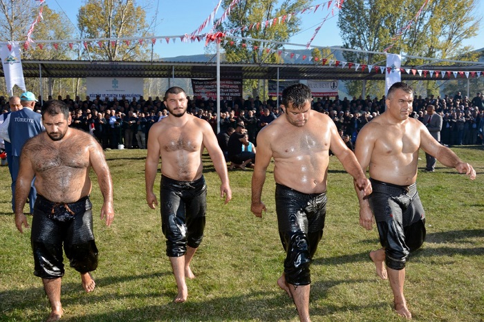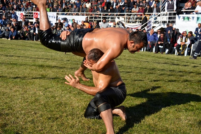 Geleneksel Asırlık Kargı Panayırı çerçevesinde düzenlenen yağlı güreşler, seyircilere heyecan dolu anlar yaşattı.