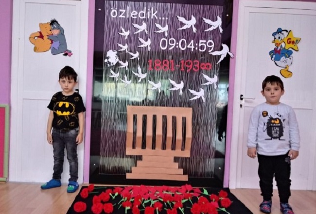 Gazi Mustafa Kemal Atatürk vefatının 80. Yıldönümünde 10 Kasım Atatürk’ü Anma etkinlikleri çerçevesinde Kargı 125. Yıl Anaokulu öğrencileri okullarında öğretmenleri eşliğinde Ataları için özel anma köşesi hazırladılar. Yaslarını sembolleyen siyah renkli büyük bir panoya “Özledik” yazısı altında Atatürk, Anıtkabir, beyaz güvercin resimleri yapıştıran ve ölüm saati ve doğum tarihini yazan öğrenciler daha sonra öğretmenleri eşliğinde Ata’nın huzuruna kırmızı karanfiller koyarak saygılarını gösterdiler ve fotoğraflar çektirdiler. Miniklerin okullarında hazırladıkları Atatürk köşesi görülmeye değerdi.