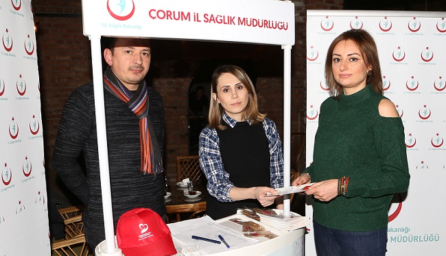 Yazar Abdullah Aren Çelik’in söyleşinin gerçekleştirildiği etkinlikte İl Sağlık Müdürlüğü tarafından organ bağışı standı da kuruldu. Yedi Sekiz Hasan Paşa Kahvecisi’nde açılan stantta Sağlık Hizmetleri Başkan Yardımcısı Dt. Emine Paydar ile sağlık memurları Yaşar İliz ve Yasin Özkan tarafından organ bağışıyla ilgili bilgilendirme yapıldı. Çorum’da organ bağışı farkındalığını arttırmak amacıyla bilgilendirmeler yaptıklarını ifade eden Paydar, Çorum olarak organ bağışı konusunda birçok büyük kentin önünde olduklarını söyledi. Organ bağışı farkındalığının son yıllarda arttığını dile getiren Paydar, 18 yaş üstündeki her bireyin organ bağışı yapabileceğini kaydetti. Organ bağışının, görmeyen bir insanın görebilmesine ya da makineye bağlı yaşamak zorunda olan bir diyaliz hastasının yeniden hayata dönmesine vesile olacağına dikkati çeken Paydar, sağlıklı bireyleri organ bağışında bulunmaya davet etti. Paydar, 5 yıl önce organ bağışı sisteminde revizyon yapıldığı için daha önce bağışta bulunanların bilgilerini güncellemesi gerektiğini ifade ederek, bağışta bulunmak isteyenlerin aile hekimleri, devlet ve özel hastanelere müracaat edebileceklerini bildirdi. Kitap Ağacı’nın söyleşi etkinliği katılan birçok kişi, organ bağışında bulundu. Yazar Abdullah Aren Çelik ile katılımcılar standı ziyaret ederek, organ bağışının önemli hakkında bilgi aldı.