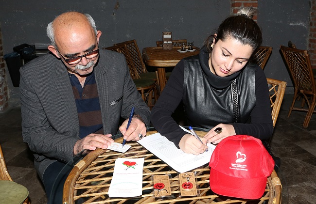 Yazar Abdullah Aren Çelik’in söyleşinin gerçekleştirildiği etkinlikte İl Sağlık Müdürlüğü tarafından organ bağışı standı da kuruldu. Yedi Sekiz Hasan Paşa Kahvecisi’nde açılan stantta Sağlık Hizmetleri Başkan Yardımcısı Dt. Emine Paydar ile sağlık memurları Yaşar İliz ve Yasin Özkan tarafından organ bağışıyla ilgili bilgilendirme yapıldı. Çorum’da organ bağışı farkındalığını arttırmak amacıyla bilgilendirmeler yaptıklarını ifade eden Paydar, Çorum olarak organ bağışı konusunda birçok büyük kentin önünde olduklarını söyledi. Organ bağışı farkındalığının son yıllarda arttığını dile getiren Paydar, 18 yaş üstündeki her bireyin organ bağışı yapabileceğini kaydetti. Organ bağışının, görmeyen bir insanın görebilmesine ya da makineye bağlı yaşamak zorunda olan bir diyaliz hastasının yeniden hayata dönmesine vesile olacağına dikkati çeken Paydar, sağlıklı bireyleri organ bağışında bulunmaya davet etti. Paydar, 5 yıl önce organ bağışı sisteminde revizyon yapıldığı için daha önce bağışta bulunanların bilgilerini güncellemesi gerektiğini ifade ederek, bağışta bulunmak isteyenlerin aile hekimleri, devlet ve özel hastanelere müracaat edebileceklerini bildirdi. Kitap Ağacı’nın söyleşi etkinliği katılan birçok kişi, organ bağışında bulundu. Yazar Abdullah Aren Çelik ile katılımcılar standı ziyaret ederek, organ bağışının önemli hakkında bilgi aldı.