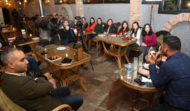 Kitap sevdalılarının bir araya gelmesiyle oluşturulan Kitap Ağacı Çorum Temsilciliği, “İlerde Hep Yalnız” ve “Kandan Adam” kitaplarının yazarı Abdullah Aren Çelik’i Çorumlu kitapseverlerle buluşturdu. 7-8 Hasan Paşa Kahvecisi’nin ev sahipliğinde gerçekleştirilen söyleşiye yazar Çelik’in yanı sıra Kitap Ağacı Çorum Temsilcileri Zeliha Aksu ve Erdinç Yaşar, Çorum Fotoğraf Kulübü Başkanı Atakan Akman, Kitap Ağacı üyeleri ve kitap severler katıldı. İki yıl boyunca yaptıkları etkinlikleri bundan sonra daha geniş kitlelere ulaştırmaya çalıştıklarını ifade eden Kitap Ağacı Çorum Temsilcisi Zeliha Aksu, yazar söyleşileri kapsamında ikinci etkinliği Abdullah Aren Çelik ile yaptıkları söyledi. Daha önce yeni nesil yazarlar arasında yer alan Kadim Gültekin’i okurlarla buluşturduklarını anımsatan Aksu, söyleşi videolarının YouTube kanalına da yükleneceğini kaydetti. Aksu, davetlerini kırmayan yazar Çelik ile etkinliğe ev sahipliği yapan 7-8 Hasan Paşa Kahvecisi sahibi Hasan Kiraz’a da teşekkür etti. Aksu’nun konuşmasının ardından Kitap Ağacı üyeleri, “İlerde Hep Yalnız” isimli ilk romanından sonra “Kandan Adam” ile okurun karşısına çıkan yazar Abdullah Aren Çelik ile keyifli bir söyleşi gerçekleştirdi.