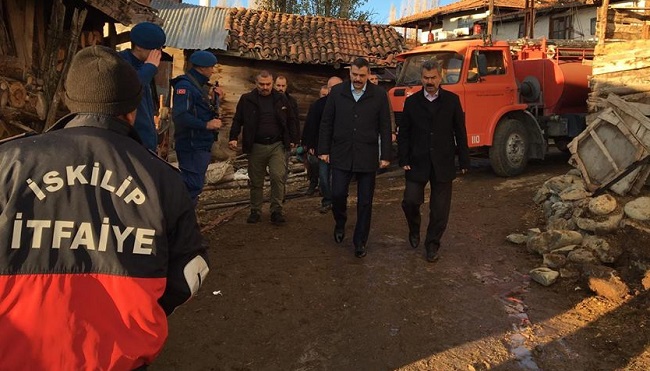 Çorum’un İskilip ilçesi Kuzuluk Köyünde gece çıkan çıkan yangında 4 ev 1 ahır tamamen yanarak kullanılamaz hale geldi. İskilip. Bayat ve Çorum itfaiyesinin yangına müdahalesi sonucu yangın daha da büyümeden önlendi. Yangında can kaybı olmazken 4 ev 1 ahır tamamen yandı. Çorum Valisi Mustafa Çiftçi ve İskilip Kaymakamı Beyazit Bestami Alkan ve Belediye Başkanı Recep Çatma sabah erken saatlerde köye giderek köy halkına geçmiş olsun dileklerini ileterek incelemelerde bulundu.