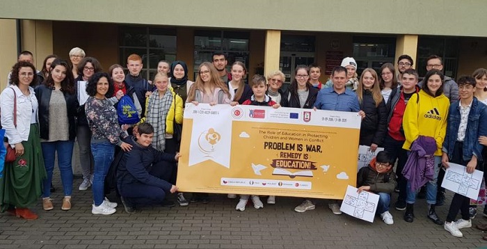 Çorum Mehmetçik Anadolu Lisesi öğretmen ve öğrencileri, Avrupa Birliği Bakanlığı AB Eğitim ve Gençlik Programları Merkezi Başkanlığınca yürütülen Erasmus+ kapsamında Avrupa Komisyonu’ndan hibe ile desteklenen “Çatışmada Çocukların ve Kadınların Korunmasında Eğitimin Rolü” isimli proje kapsamında Polonya’nın Gdansk şehrine gittiler. Gdansk’taki Zespol Szkol Ogolnoksztalcacych Nr 2 okulunda, öğretmen ve öğrenci toplantısını gerçekleştiren Mehmetçik Anadolu Lisesi Öğrencileri, “Savaş Tarihinde Kadının Rolü” konulu toplantıda Çekya, İtalya, Polonya, Romanyalı öğrencilerle bir araya geldiler. Toplantıda öğrenciler, kendi tarihlerinde öne çıkan bir kadın kahramanı tanıttılar. Mehmetçik Anadolu Lisesi öğrencileri, Halide Edip Adıvar ile ilgili sunum yaptı. Öğrencilerin Halide Edip Adıvar ile ilgili hazırladığı video ve portre çalışması ilgi uyandırdı. Öğrencilerin tasarladığı ve Halide Edip Adıvar’ın “Haksızlığa sapıp çoğu insanın seninle beraber olmasını sağlamaktansa adaletle davranıp tek başına kalmak daha iyidir.” sözünün yer aldığı kitap ayracı, katılımcı ortaklara hediye olarak verildi. Struthof Toplama Kampı ziyaret edilerek Holokost üzerine tartışmalar yapıldı. II.Dünya Savaşı’nda kadınların rolünü anlamak ve Polonya tarihi hakkında bilgi sahibi olmak için, II.Dünya Savaşı Müzesi ziyaret edildi. Gdansk Göçmen Bürosu ziyaret edilerek resmî makamlardan mültecilere dair yapılan çalışmalar öğrenildi ve farklı bakış açıları kazanıldı. Her ortağın yerel ve popüler müziğinin yer verildiği ve yerel dansların edildiği eğlence ile toplantı sonlandırıldı.Tüm katılımcılar iş birliği içinde bilgi birikimlerini artırıp İngilizce konuşma becerilerini geliştirip bir hafta boyunca muhteşem deneyimler yaşadılar.