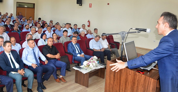 Çorum İl Milli Eğitim Müdürü Ömer Yılmaz Merkez Okul Müdürleri ile 2019-2020 eğitim öğretim yılı öncesi değerlendirme toplantısı yaptı. Toplantıda İl Milli Eğitim Müdürü Ömer Yılmaz 2019-2020 eğitim öğretim yılı için yapılan hazırlık çalışmalarını değerlendirerek: “Sizler Bakanlığımızın eğitim politikalarının yürütücülerisiniz. Bu bağlamda eğitim yöneticileri olarak sizler önemlisiniz. “Okul müdürlerinin eğitim hedeflerine odaklanmaları ve öğretmen motivasyonunu üst düzeyde tutmak için gerekli tedbirleri almaları gerekiyor. Türk Milli Eğitiminin Temel Amaçları ve Genel İlkeleri ile Bakanlığımızın 2023 Vizyon Belgesi çerçevesinde hep birlikte Çorum’da eğitimi daha ileriye taşıyacağımıza inanıyor, yeni eğitim öğretim yılında hepinize başarılar diliyorum” dedi. Toplantıda ayrıca Milli Eğitim Müdür Yardımcıları ve Şube Müdürleri bölümleri ile ilgili değerlendirmeler yaparak yeni uygulamalar ve devam eden süreçlerle ilgili bilgi paylaşımında bulundular.