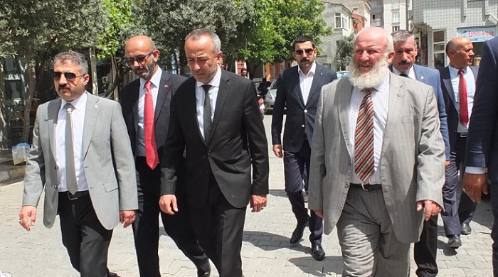 Milliyetçi Hareket Partisi Çorum 1. Sıra Milletvekili Adayı Mehmet Akif Aras, seçim çalışmalarına Kargı’da devam etti. Beraberinde Türkiye Kamusen İl Temsilcisi Selim Aydın, il ve ilçe yöneticileriyle birlikte Kargı’ya giden Aras, Kargı İlçe Başkanı Raşit Erdoğan ve kalabalık partili grubu tarafından karşılandı. İlk olarak ilçe teşkilatıyla bir araya gelen Aras, partililere 24 Haziran seçimlerinin öneminden bahsetti. Aras, daha sonra ise, ilçede bulunan esnafları gezdi. Esnaflara hayırlı işler dileyen MHP Milletvekili Adayı Aras, hem hal-hatır sorarak sorunlarını dinledi, hem de 24 Haziran seçimlerinde Cumhurbaşkanı adayı Recep Tayyip Erdoğan ve Cumhur ittifakına destek istedi. Kaymakam Vekili Emre Çifci, Belediye Başkanı Zeki Şen’i de ziyaret ederek bir süre görüşen Milletvekili Adayı Aras, polis teşkilatını da unutmadı. Emniyet Amirliği’ni ziyaret ederek polis memurlarına hayırlı görevler dileyen Aras, kendisine gösterilen ilgi ve alakadan memnun bir şekilde Kargı’dan ayrıldı.