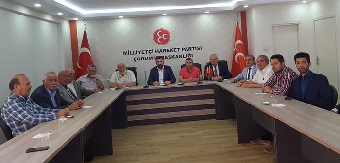 MHP Çorum İlçe Başkanları Toplantısı, İl Başkanı Arslan Kaynar başkanlığında yapıldı. Parti binasında yapılan toplantıya tüm ilçe başkanları katılım sağladı. Toplantıda yerelde yapılan ve yapılacak olan çalışmalar üzerinde istişareler yapıldı ve genel siyaset konuşuldu. Yemek ikramından sonra toplantı sona erdi. Toplantı sonrasında MHP heyeti, Ülkü Ocakları İl Başkanlığına atanan Orhan Tosik’e hayırlı olsun ziyaretinde bulundu. Ziyaretten duyduğu memnuniyeti dile getiren Ülkü Ocakları İl Başkanı Orhan Tosik, “Hayırlı olsun ziyaretinde bulunan tüm başkanlarıma teşekkür ederim. Ülkü Ocakları Genel Başkanımız Sinan Ateş’in takdirleri ile Ülkü Ocakları İl Başkanı olarak 29 Haziran 2019 günü görevime başladım. Bizler Ülkü Ocakları olarak Liderimiz Sayın Devlet Bahçeli’nin emir ve talimatları dışında hareket etmeden her zaman partimiz olan MHP ile birlik ve beraberlik içerisinde hareket edip çalışmalarımıza devam ederek davamıza hizmet edeceğiz. Temsil ettiğimiz makam şehitlerimizin makamıdır ve yükümüz ağırdır. İnşallah görev süremiz boyunca rahmetli Başbuğumuz Alparslan Türkeş ve bilge liderimiz Devlet Bahçeli’ye ve tüm ülkücü şehitlerimize layık olmaya çalışacağız.” dedi. MHP İl Başkanı Arslan Kaynar ise, “Ülkü Ocakları İl Başkanlığına atanan Orhan Tosik Başkanıma bu kutlu görevinde başarılar diliyorum. Rahmetli Başbuğumuz Alparslan Türkeş’in biz evlatlarına emaneti olan MHP ve Ülkü Ocakları birdir her daim ayakta kalacaktır. Liderimiz Devlet Bahçeli’nin önderliğinde inşallah bizler de bu kutlu görevlerimizde elimizden gelenin fazlasını yapmaya gayret göstereceğiz. Ülkü Ocakları hepimizin yetiştiği kutsal bir ocaktır. Ve tüm Ülkücülerin yeri MHP’dir. Çorum teşkilatları olarak Ülkü Ocaklarımız ile istişareler halinde çalışmalarımızı daha da artırarak MHP’yi Çorum’da inşallah hak ettiği yerlere taşıyacağız.” diye konuştu.