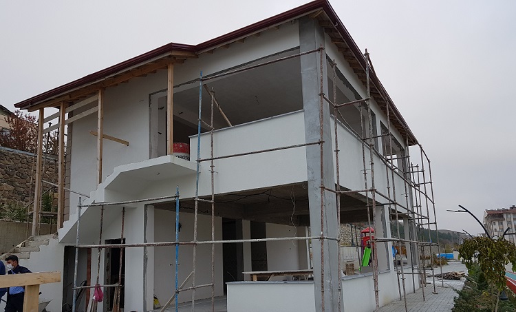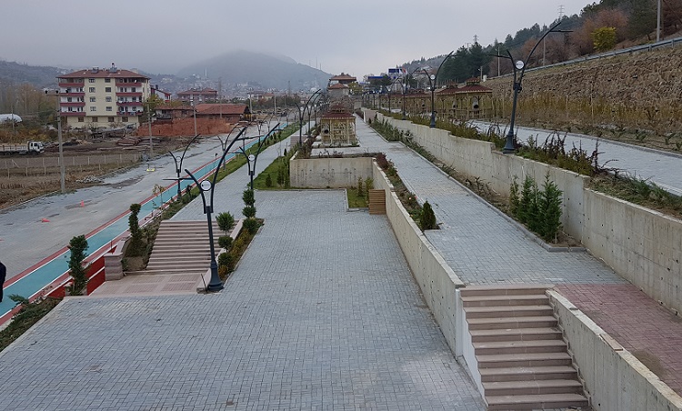 Bayat ilçesinde yapımı devam eden millet bahçesinin kafeterya bölümünün inşası hızla devam ediyor.