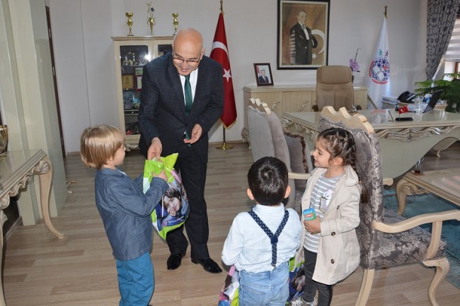 Ulukavak Anaokulu öğrencileri, 2018-2019 eğitim-öğretim yılının başlaması nedeniyle İl Milli Eğitim Müdürü Seyit Ali Büyük’ü ziyaret etti. Ulukavak Anaokulu yönetici ve öğretmenlerinin de eşlik ettiği ziyarette, Anaokulu heyeti Büyük’e çiçek takdim ederek, yeni eğitim öğretim yılı için hayırlı olsun dileğinde bulundular. Ziyarette öğrencilere hediye veren Büyük ise “Mutluyuz okullarımız öğrencilerimizle şenlendi. Anaokullarımızın hepsi oldukça başarılı ve iyi durumdalar. Hep birlikte çalışarak, güç birliği yaparak bu seviyeye geldik. 2018-2019 eğitim öğretim yılında başarılar diliyorum.” dedi.