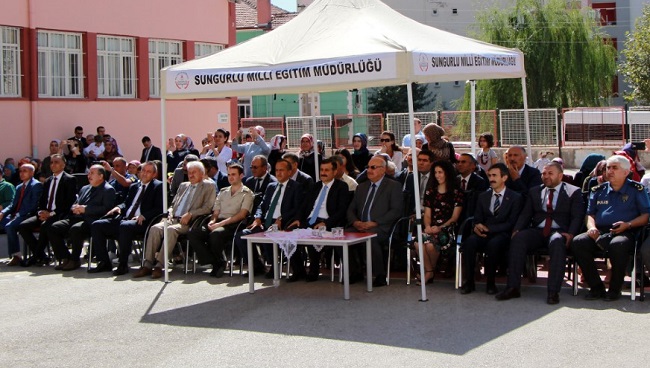 Sungurlu’da İlköğretim Haftası düzenlenen törenle kutlandı. Atatürk Meydanında ki Atatürk Anıtına çelenk sunumun ardından, Yavuz Selim İlkokulu’nda kutlama programı düzenlendi. Saygı duruşu ve İstiklal Marşı’nın okunmasıyla başlayan programda, Milli Eğitim Müdürü Mustafa Eryiğit, haftanın anlam ve önemini belirten bir konuşma yaptı. Eryiğit, konuşmasında şu ifadelere yer verdi, “Yeni bir öğretim yılına başlamanın sevinç ve heyecanı hep beraber yaşamaktayız. Sungurlu ilçemizde geçtiğimiz eğitim öğretim yılında eğitim öğretim adına çok güzel başarılara imza attığımız düşüncesindeyim. El birliğiyle yürüttüğümüz bu çalışmalar için sizlere canı gönülden teşekkür ediyorum. Her zaman ifade ettiğim gibi başarı bir hedef değil yolculuktur. Bizlerde bu inançla Sungurlu’nun güzel çocukları için çalışmaya projeler üretmeye devam edeceğiz. Sungurlu Mili Eğitim Müdürlüğü ailesi olarak velilerimiz ile işbirliğini önemsiyor bu doğrultuda çalışmalar yürütüyoruz.” Konuşmanın ardından okulda yaz tatili döneminde açılan Okuma Yazma kursunu başarı ile tamamlayan Fatma Damar bir konuşma yaptı ve Kaymakam Mitat Gözen kursa katılan veliler adına Fatma Damar’a çiçek takdim etti. Program, okulun 3. sınıf öğrencileri ‘Andımız’ şarkısını seslendirmesi, anasınıfı öğrencilerinin ‘Yeni Ders Yılı’ adlı şiir okuması, 2/C sınıfı öğrencilerinin ‘Sevgi Çiçekleri’ adlı gösterileri, 1/B sınıfı öğrencisi Bilge Kağan Erarslan ‘Açıldı Okulumuz’ adlı şiir okuması, 4/C sınıfı öğrencilerinin ‘İzindeyiz Yüce Atam’ adlı gösterileri ile devam etti.