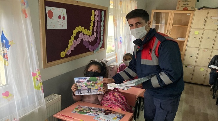 Laçin İlçe Jandarma Komutanlığı, Gökgözler İlkokulu öğrencilerine okul güvenliği eğitimi verildi.