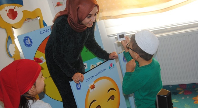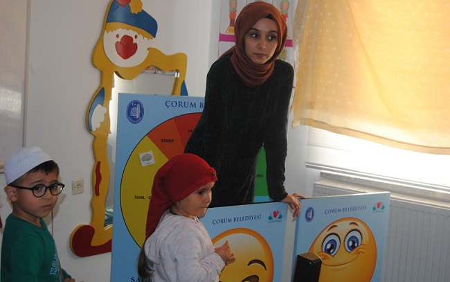 Çorum Belediyesi Aile Eğitim Merkezi, Kur’an Kursu öğrenimi gören öğrenci ve velilere yönelik “Sağlıklı Beslenme” semineri verdi. Aile Eğitim Merkezi ile İl Müftülüğünün ortaklaşa düzenlediği seminer Buhara Cami Kız Kur’an Kursu’nda gerçekleştirdi. Aile Eğitim Merkezi Beslenme Uzmanı Berna Arslan Demirbaş ve Hilal Kara Yüce, velileri ve öğrencileri sağlıklı beslenme konusunda bilgilendirdi. Demirbaş ve Yüce çocuklara sağlıklı beslenmenin önemini, besin guruplarını, zararlı ve yararlı besinlerin ayrımını gösteren kısa film kullanılarak çocuklara eğitici oyunlar oynattı. Velilere ise çocuklarının yeterli ve dengeli beslenmesinin sağlanabilmesi için çocukların 4 temel besin grubu olan süt ve süt ürünleri, et, yumurta ve kuru baklagiller, sebze ve meyveler, tahıllar günlük almaları gereken miktarı belirtti. Hiçbir şeyden mahrum kalmadan yeterli ve dengeli bir şekilde beslenilmesi gerektiğinden ve sağlıklı beslenmenin hayat kalitesini ne kadar arttırabileceği ifade ettiler. Çorum Belediyesi Aile Eğitim Merkezi seminer programlarına diğer Kur’an kurslarında da devam edecek.
