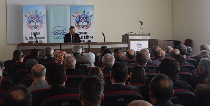 Çorum İl Milli Eğitim Müdürü Yahya Çoban, il merkezinde görev yapan okul müdürleriyle bir araya geldi. Gerçekleştirilen toplantıda İl Milli Eğitim Müdürümüz Çoban, “2023 Eğitim Vizyonu” kapsamında yapılan çalışmalara değinerek, Vizyon Belgesinde belirlenen hedeflere yönelik yapılacak çalışmalar hakkında bilgilendirmelerde bulundu. Çoban toplantıda yaptığı konuşmasında, “Akıl ve gönül ışığında okul profili değerlendirme sistemi ile kendini geliştiren okullar hedefleyeceğiz, bu bağlamda, bir okulu kalkındırma değil, tüm okullarımızın başarı ve imkân farklılıklarını ortadan kaldırma çabasında olacağız. Eğitim her alanda devam ediyor, burada en önemli kaynağımız insandır. Okullarımızda yeni yaşam alanları inşa edip, tasarım ve beceri atölyelerimizde öğrencilerimizin becerilerine yönelik çalışmalarla, her çocuğun farklı olduğunu ve her bireyin farklı öğrendiğini unutmadan çalışıp, meşaleyi tutan siz eğitim liderleri ve fedakâr öğretmenlerimizin motivasyonunu en yüksek seviyede tutarak, aynı hedef uğrunda tek yürek olarak çalışmaya devam edeceğiz. Sadece akademik başarıyı hedefleyen, başarı çıtasını sınav performansı ile sınırlayan bir eğitim sisteminin tek kanatlı bir kuşu uçurmaya çalışmaktan farkı yoktur. Bizler eğitim öğretim faaliyetlerimizi planlarken ve hedeflerimize odaklanırken çocuklarımızın yüksek insani ve ahlaki değerleri benimsemeleri, davranış haline getirmeleri için de gerekli çabayı sarf etmek zorundayız. İlimizdeki tarihi ve kültürel varlıklarımız ile sanayi kuruluşlarımız okul dışı öğrenme ortamları olarak değerlendirilecektir. Eğitimin üretim ve istihdamla bağlantısı düşünüldüğünde, güçlü bir ekonominin kaliteli ve nitelikli insan gücü ihtiyacını karşılamak için sorumluluğun bize ait olduğunu unutmadan çalışacağız. Ülkemizin 2023 hedeflerine emin adımlarla yürümesi için ödevimizi eksiksiz olarak yerine getireceğiz.” dedi.