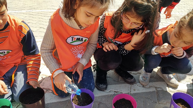 Çorum merkez İsmail Kakaç İlkokulu 3/A sınıfı öğrencileri, sınıf öğretmeni Duran İrdeli liderliğinde toprağa tohum ektiler. Her öğrenci kendi ektiği tohumun bakımından sorumlu olacak ve fidanların gelişimlerini takip edecek. Bu sayede öğrenciler yaşayarak öğrenecek ve doğayla daha sıkı bir bağ kuracaklar. Tema Vakfı’nın yürütmüş olduğu projeyi değerlendiren sınıf öğretmeni Duran İrdeli “Bu proje ile çevreye karşı duyarlı ve içinde güçlü bir doğa sevgisi olan nesiller yetiştirmek istiyoruz. Bunun için ilk adım olarak her bir öğrencimiz toprağa birer karaçam tohumu ektiler. Bundan sonra öğrencilerimiz kendi yetiştirdikleri fidanları gözlemleyecek ve takip edecek. Projenin sahibi Tema Vakfı’na ve vakfın il temsilcisi Erdal Şahin’e teşekkür ediyorum.” dedi.