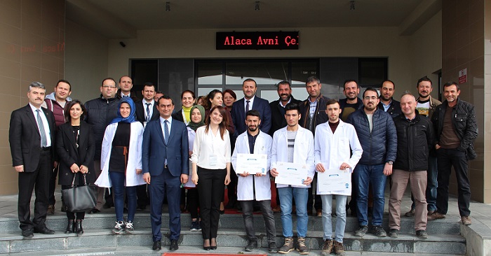 Hitit Üniversitesi ile Tarım ve Kırsal Kalkınmayı Destekleme Kurumu işbirliğinde ’Süt Hijyeni ve Buzağı Ölümlerinin Önlenmesi‘’ konulu eğitim seminerleri düzenlendi. Alaca Avni Çelik Meslek Yüksek Okulu’ndaki konferansta konuşan TKDK İl Koordinatörü Mustafa Mansur Yalvaçer, üniversite ile süt hijyeni ve buzağı ölümlerinin önlenmesi noktasında çalışması için işbirliği yaptıklarını belirterek, TKDK tarafından desteklenen işletmelere bu konulara yönelik bilgi kartları hazırlanması ve eğitimlere katılanlara katılım belgesi verilmesi şeklinde işbirliği faaliyetleri içeren bu çalışmanın geçen kısa süre zarfında hayata geçirilmesinde emek sarf eden Rektör Reha Metin Alkan ve öğretim üyelerine teşekkür etti. Yalvaçer, işbirliği faaliyeti kapsamında Mart ayı içerisinde Çorum Merkez, Mecitözü ve Sungurlu İlçelerinde de seminerler planlandığını, söyledi. Avni Çelik MYO Veterinerlik Bölümü Öğretim Üyesi ve Bölüm Başkanı Yrd. Doç. Dr. Bahat Comba da, hayvan yetişcilerine yönelik başta sağımhanede uyulması gereken genel kurallar olmak üzere 16 farklı başlıkta bilgilendirci kartlar hazırladıklarını söyledi. Yrd.Doç.Dr. Şeyma Aydemir de “Sağım ve Hijyen Kuralları” hakkında eğitim seminerine katılanlara bilgi verdi. Program TKDK desteğiyle Alper Çağlar tarafından kurulan 110 başlık sağmal büyükbaş çiftliğinin gezilmesinin ardından sona erdi.