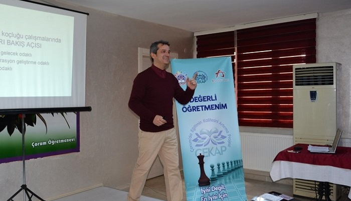 Çorum İl Milli Eğitim Müdürlüğü ile Anadolu Vakfı işbirliğinde Çorum İl Milli Eğitim Müdürlüğü tarafından öğretmenlere yönelik olarak ‘Öğrenci Koçluğu Semineri’ düzenlendi. Çorum İl Milli Eğitim Müdürlüğü ile Anadolu Vakfı işbirliğinde 2 yıldır yürütülen ‘Değerli Öğretmenim Projesi’ kapsamında TEOG, YGS ve LYS sınavına girecek öğrencilere destek sağlamak amacıyla düzenlenen seminer Çorum Öğretmenevi’nde 2 gün sürdü. Seminer, Doç. Dr. Teoman Hekimoğlu tarafından verildi. Ortaokul ve liselerde görev yapan rehber öğretmenler, branş öğretmenleri ve okul idarecilerinden oluşan 130 öğretmenin katıldığı seminerde konuşan Çorum İl Milli Eğitim Müdürü Seyit Ali Büyük, “öğrencilerimizin başarısı ve motivasyonu için koçluk sistemi önemli. Daha önce 1000 öğretmenimize ‘Sosyal Girişimcilik’, 100 idarecimize ‘Yönetişim Becerileri’ ve 150 öğretmenimize ise ‘Proje Döngüsü’ semineri gerçekleştirdik.