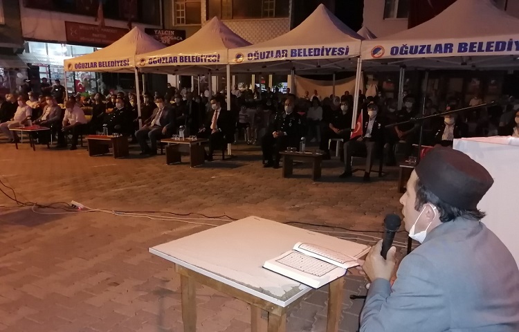 Oğuzlar’da 15 Temmuz Demokrasi ve Milli Birlik Günü kapsamında gerçekleşen törenlere 15 Temmuz ruhu yansıdı. 15 Temmuz Demokrasi ve Milli Birlik Günü kapsamında Oğuzlar’da gündüz şehitleri hatırlamak için şehitlik ziyaretleri, şehitler için okunan mevlid-i şerif ve şehit ailesi ziyaretinin ardından 20.00’de Cumhuriyet Meydanında gerçekleşen törenlerde 15 Temmuzun birlik ve beraberlik ruhu yansıdı. Kur’an-ı Kerim tilaveti, 15 Temmuz dolayısıyla yapılan resim/şiir/kompozisyon yarışmalarının ödül törenleri, sinevizyon gösterileri, Oğuzlar Belediye Başkanı Muzaffer Yıldırım’ın, Oğuzlar Kaymakamı Onur Titiz’in günün anlam ve önemini belirten konuşmaları, Cumhurbaşkanı Recep Tayyip Erdoğan’ın 15 Temmuz Demokrasi ve Milli Birlik Günü konuşmasının izlendiği demokrasi nöbeti 00.13’te okunan sela ile sona erdi. Oğuzlar Belediye Başkanı Muzaffer Yıldırım 15 Temmuz Demokrasi ve Milli Birlik Günü dolayısıyla yaptığı konuşmada;” Geçmişte demokrasiye balyoz gibi inen, özgürlüklerin ve insan haklarının kısıtlanması süreçlerinin yaşandığı dönemleri görmüş bir milletin artık darbelere geçit vermemek için hep birlikte şehadeti göze alıp gece abdestini alarak meydanlarda direndiği, iradesine pranga vurmaya çalışan hain terör örgütü karşı milli birlik ve beraberlik ruhuyla topyekün direnişinin 4. yıl dönümünde tarihin her döneminde ülkenin birliği ve bütünlüğü için mücadele ederken şehadete erişen tüm aziz şehitlerimizi rahmet ve minnetle anıyor, gazilerimizi minnetle yad ediyoruz ” diyerek 15 Temmuz’un önemini belirtip şehitleri andıktan sonra Türk milletinin demokrasi ve milli birlik ruhuyla tüm Dünyaya gösterdiği mücadelenin tarihin her döneminde süreceğini belirtti. Oğuzlar Kaymakamı Onur Titiz 15 Temmuz şehitleri ve Oğuzlarlı şehitleri andıktan sonra 15 Temmuz’un önemine binaen şu açıklamalarda bulundu” Tarihimizin en karanlık hadiselerinden biri olan 15 Temmuz 2016 hain darbe kalkışması milletimizin verdiği destansı mücadele neticesinde parlak bir zafere ve aydınlığa dönüşmüştür. Aziz milletimiz 15 Temmuz gecesi tıpkı Çanakkale’de, İstiklal Harbimizde olduğu gibi tüm fertleriyle tek yürek, tek bilek olmuştur. Tankın, tüfeğin, helikopterin, uçağın karşısına sadece ve sadece imanıyla, inancıyla, yüreğiyle dikilerek; demokrasimize, istiklalimize ve istiklalimize sahip çıkmıştır. ”