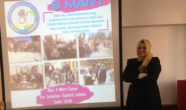 Ortaköy Belediye Başkanı Taner İsbir ve Ortaköy Ak Parti Kadın Kolları Başkanı Sevda Karakaş 8 Mart Kadınlar Gününde kadınlara çiçek dağıtarak gönüllerini aldılar. Ortaköy Ak Parti Kadın Kolları akşamda kadınlar için bir program düzenledi ve kadınlara keşkek ikramında bulunuldu. Belediye toplantı salonunda gerçekleşen programda Ortaköy Ak Parti Kadın Kolları Başkanı Sevda Karakaş bir konuşma yaptı. Karakaş konuşmasında; Öncelikle tüm dünya kadınlarının gününü kutluyorum. Biz bu yıl kadın berekettir dedik keşkek yapıp ikram etmeye karar verdik. Kadın evin tadı tuzudur dedik tatlı ikram etmeye karar verdik. Aslında kadın hayatın ta kendisidir. Kadın adına ne söylense az yazar Zekeriya Efiloğlu’nun şu sözleri çok güzel özetliyor kadını; Kadın; kainatın özü yüreğimizin közü, karanlığın aydınlık yüzü,bazen silah,bazen derin bir ah, kadın bazende felahtır. Sapa sağlam bir kapı yıkılmayan yapı, kadın kalbimizde tapudur. Kadın kadim bir arkadaş, bulunmaz bir sırdaş, kadın dertlerimize haldaştır. Tek başına ev, bulunmaz bir dev kadın içimizde alevdir. Cennetin bir bahçesi, hayatın pür neşesi,her yolun bir köşesidir. Kadın bitmeyen bir zaman, en mükemmel an, kadın kocaman vatandır. Yazılamayan şiir, aşkla akan nehir, kadın eşsiz bir safir, kadın eğer değerini bilirsen hayatın anlamı ama mutluluğun tamamıdır. Programımıza katkılarından ve ilçe kadınlarımızı gerçekten önemseyen sayın belediye başkanımız Taner İsbir’e sonsuz teşekkürler. Ortaköylü hanımlar olarak kendimizi çok şanslı hissediyoruz. Ortaköy’de görev yapan hanım kardeşlerimizi de ziyaret edip çiçeklerimizi taktim ettik.İyi gün de kötü günde yanında olduklarımızı kadının gücünü önemsediğimizi ifade ettik. Sözlerimi ilçemizin emekçi vefakâr, cefakâr kadınlarına bizleri yalnız bırakmadıkları için destekleri için teşekkür ederek sonlandırmak istiyorum dedi. Ortaköy Belediye Başkanı Taner İsbir’de 8 Mart Dünya Kadınlar Günü programında tüm kadınların gününü kutladı.
