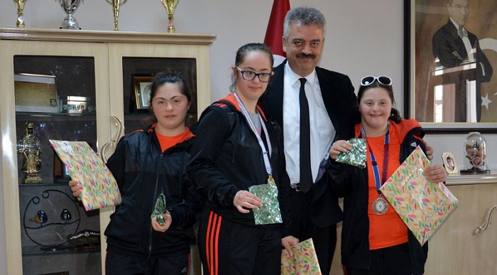 Çorum Merkez Zübeyde Hanım Özel Eğitim Uygulama Okulu şampiyonları Milli Eğitim Müdürü Yahya Çoban’ı ziyaret etti. Çorum Merkez Zübeyde Hanım Özel Eğitim Uygulama Okulu (III. Kademe) Spor Kulübü olarak Türkiye Özel Sporcular Spor Federasyonu tarafından 22-24 Şubat tarihleri arasında Antalya’da düzenlenen Özel Sporcular Masa Tenisi Türkiye Şampiyonası’nda Merve Peker Türkiye Birincisi, Gamze Çalışkan Türkiye üçüncüsü ve Aybüke Ceren Babaoğlu ise Türkiye altıncısı oldu. Okul Müdürü Can Fırat Şahin, Öğretmenleri Mehmet Ali Kurt, Özgür Akman ve Şampiyonlardan oluşan heyet, İl Milli Eğitim Müdürü Yahya Çoban’ı makamında ziyaret ettiler. Türkiye Şampiyonu Merve Peker Finlandiya’da yapılacak olan Dünya Şampiyonasında Milli Takımda Türkiye’yi temsil edecek. Özel Öğrencilerin sevinç ve gururla karşılayan İl Milli Eğitim Müdürü Yahya Çoban, şampiyon öğrencileri tebrik ederek hediyeleri verdikten sonra:,“Sporcumuzun Ülkemizi uluslar arası alanda da başarı ile temsil edeceğinden şüphemiz yok” dedi.