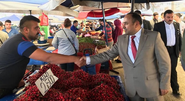MHP Çorum Milletvekili Adayı Mehmet Karaca seçim çalışmalarına hız kesmeden devam ediyor. Seçim çalışmaları kapsamında Karaca bugünde Ülkü Ocakları Çorum İl Başkanı Muhammet Yavuz Ünlü ile birlikte Çarşamba Pazar’ını ziyaret etti. Pazarcı esnafına bol kazançlar dileyen Karaca, vatandaşlara Cumhur ittifakı hakkında da bilgiler verdi. “Yüzler gülüyor umut var çünkü ülkücüler var.” diyen Karaca, Türkiye’nin bir tarım ve hayvancılık ülkesi olduğunu ifade ederek, “Bu sebeple tarım yapan ve birtakım hayvansal faaliyetlerde bulunan kişilerin toplum üzerindeki etkisi de büyüktür. Bu kişiler yetiştirdikleri sebze ve meyveler, hazırladıkları hayvansal ürünler ile özellikle de şehirlerde yaşayan insanların gıda ihtiyacını karşılamaktadır. Çiftçilerin ve köylülerin olmadığı bir ülkede tüm tarım ürünleri ve hayvansal ürünler fabrikalarda üretilecek ve bu gıdalar doğallıktan uzaklaşacaktır. Köylü ve çiftçilerimizin yüzü gülmeli onlar her şeyin en iyisine layık. İnşallah mazot gübre ve tüm girdiler de sıfır vergi olacak devlet sözü” şeklinde konuştu.