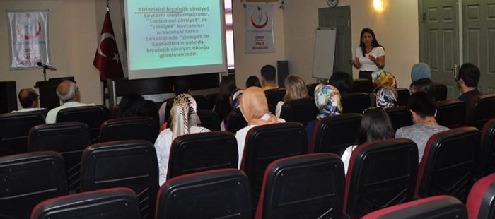 İl Sağlık Müdürlüğü İzleme ve Değerlendirme Şube Müdürlüğünde görevli Sosyal Çalışmacı Lalizer Erden tarafından İl Sağlık Müdürlüğü Toplantı Salonunda ” Kadın-Erkek Fırsat Eşitliği” konulu eğitim gerçekleştirildi. Kadınların sosyo-ekonomik konumlarının güçlendirilmesi, toplumsal yaşamda kadın ve erkek eşitliğinin sağlanması, sürdürülebilir ekonomik büyüme ve sosyal kalkınma amaçlarına ulaşılabilmesi için kadınların istihdamının artırılması konularına değinilen eğitime, İl Sağlık Müdürlüğü ve Halk Sağlığı Müdürlüğünde çalışan personeller katıldı. Eğitim sonunda katılımcıların soruları cevaplandırıldı.