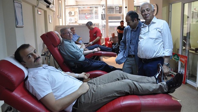 15 Temmuz Demokrasi ve Milli Birlik Günü etkinlikleri kapsamında İl Sağlık Müdürlüğü koordinasyonunda İl Halk Sağlığı Müdürlüğü, Kamu Hastaneleri Birliği Genel Sekreterliği ve Kızılay Çorum Şubesi işbirliği ile birlikte Kızılay Kan Merkezi’nde toplu olarak kan bağışında bulunuldu. Sağlık Müdürü Dr. Metin Öztürk, Halk Sağlığı Müdürü Dr. Ahmet Barış, Kamu Hastaneleri Birliği Genel Sekreteri Dr. Ömer Sobacı ve ilgili kurumların personellerinin hazır bulunduğu bağış esnasında yapılan açıklamada, “15 Temmuz 2016 tarihinde Türk demokrasisine ve milli birliğine karşı gerçekleştirilen hain darbe girişimi, halkımızın topyekun karşı duruşu ve yüzlerce şehidimizin direnişi ile önlenmiştir. Bu hain darbe girişiminde aziz vatanımız uğruna şehit olan vatandaşlarımız, sağlık çalışanlarımız adına bu şanlı direnişin mana ve maneviyatına uygun bir şekilde almak önem arz etmektedir. Bu bağlamda, 15 Temmuz kalkışmasının sene-i devriyesinde yaşanılanların, demokrasiye yönelik kalkışma kapsamında yaşamı pahasına görevinin başında hizmet eden sağlık personelinin yaşadıklarının unutulmaması amacıyla Kızılay Kan Merkezi’nde toplu olarak kan bağışında bulunuldu” denildi.