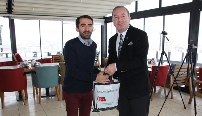 Sungurlu Belediye Başkanı Abdulkadir Şahiner, 10 Ocak Çalışan Gazeteciler günü nedeniyle gazetecilerle bir araya geldi. Sungurlu Belediye Başkanı Abdulkadir Şahiner, 10 Ocak Çalışan Gazeteciler Günü münasebetiyle Çorum ve ilçelerinde yayın yapan gazete, televizyon, internet televizyonu ve internet haber sitelerinin temsilcileriyle Mesire Kafede bir araya geldi. Çorum ve ilçelerinde yayın yapan medya kuruluşlarının temsilcileriyle kahvaltıda bir araya gelen Başkan Abdulkadir Şahiner, basın mensuplarının son derece hassas bir görevi yerine getirdiğini, toplumun gören gözü, duyan kulağı olarak görev yaptığını ifade etti. “Toplum sizlerin şahitliği ile bilgileniyor, öğreniyor” diyen Başkan Şahiner, “Gazetecilik mesleği, toplumsal bilinci arttırmak, güçlendirmek ve kamu yararına her zaman ön planda tutmak açısından önemli bir yere sahiptir. Bu nedenle kamuoyunun doğru bilgilendirilmesi ve olayların anlık olarak servis edilmesi adına önemli bir görev üstlenmektedirler. Toplumun gelişimi ve kalkınma süreci de basın çalışanlarının desteği ile daha hızlı olacaktır. Bu duygu ve düşüncelerle ilçemizin, ilimizin ve ülkemizin sorunlarına değinen, gerek yerel gerek ulusal çapta tanıtımını yapan basın mensuplarının 10 Ocak Çalışan Gazeteciler Günü’nü kutlar, özel hayata saygılı bir anlayışla çalışmalarını sürdüren bütün basın mensuplarına başarılarının devamını dilerim” dedi. Konuşmasının ardından Başkan Şahiner, 10 Ocak Çalışan Gazeteciler Günü’nü gazetecilerle birlikte pasta keserek kutladı. Daha sonra gazetecileri makamında ağırlayan Başkan Şahiner, gazetecilere çeşitli hediyeler takdim etti. Program, Belediye binasında hatıra fotoğrafı çektirilmesiyle sona erdi.