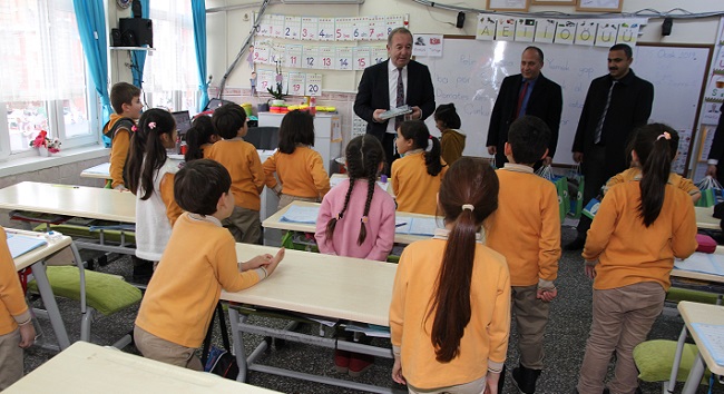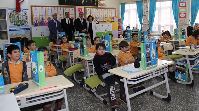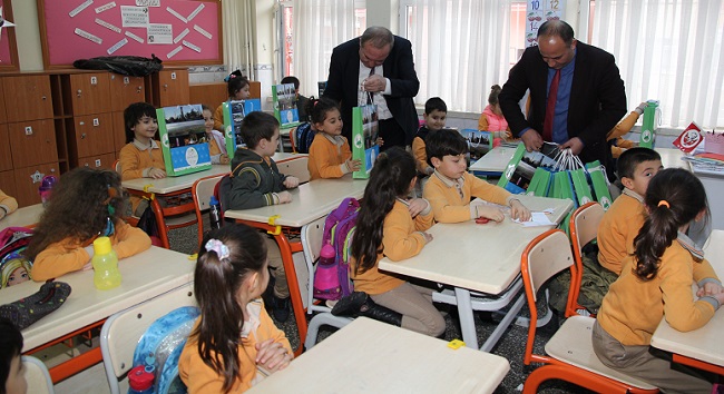 Sungurlu Belediye Başkanı Abdulkadir Şahiner, yarıyıl tatiline girecek olan 467 ilköğretim birinci sınıf öğrencisine karne hediyesi olarak “okuma seti” hediye etti. Sungurlu’daki tüm ilkokullara kitap setlerinin dağıtıldığını ifade eden Başkan Şahiner, merkezdeki bazı ilköğretim okullarına bizzat giderek hediyesini kendi elleri ile miniklere verdi. Gittiği okulda öğrencilerin büyük ilgi ve sevgisi ile karşılaşan Şahiner, yarıyıl tatili boyunca okumalarını geliştirmeleri için çocuklara küçük bir hediyesi olduğunu söyledi. Daha sonra sınıfları gezerek öğrencilerle yakından ilgilenen Şahiner’i karşılarında gören minikler büyük bir sevinç yaşayarak çizdikleri resimleri başkan amcalarına hediye etti. Hediye kitaplarını alan öğrencilere seslenen Şahiner, “Birinci sınıflardaki yavrularımız okuma yazmaya geçtikleri için ödüllendirmek istedik. Burada asıl amacımız, geleceğimiz olan çocuklarımıza okuma bilincini yerleştirmek ve okumayı sevdirmek. Her zaman söylediğimiz gibi çocuklarımızdan tek isteğimiz: Bol bol kitap okumaları ve derslerine adapte olmaları. Bizler onlar için yeni projeler üretmeyi sürdüreceğiz” diye konuştu.