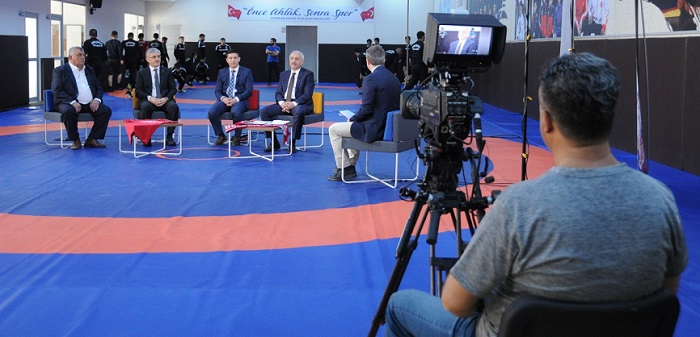 TRT Spor ekranlarında yayınlanan Salto programının çekimleri Çorum’da yapıldı. Cumartesi günü yayınlanacak olan programın çekimlerine Belediyespor Kulübü Başkanı Zeki Gül ve Belediyesporlu yöneticiler katıldı. Yapımcılığını Yüce Er’in, yönetmenliğini Kasım Akkoyun’un yaptığı “Salto” programının çekimleri Çorum Belediyesi Mevlana Spor Salonu’nda bulunanGüreş Eğitim Merkezi’nde yapıldı. Belediyespor Spor Kulüp Başkanı ve Güreş Federasyonu Grekoromenden sorumlu As Başkan Zeki Gül, Belediye Spor İşleri Müdürü Nadir Solak, BelediyesporAmatör Sporlardan Sorumlu As Başkanı Mustafa Ercan ve Güreş İl Temsilcisi Hüseyin Teke, program sunucusu Faruk Mutkan’ın sorularını cevapladı. Çorum Belediyesi’nin spora yaptığı yatırımları anlatan Zeki Gül, tüm Çorum halkını 1 Nisan 2017 Cumartesi günü saat 11.30’da TRT Spor ekranlarında Çorum’un ve Çorum Belediyespor’un tanıtımının yapıldığı “Salto” programını izlemeye davet etti.