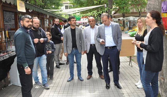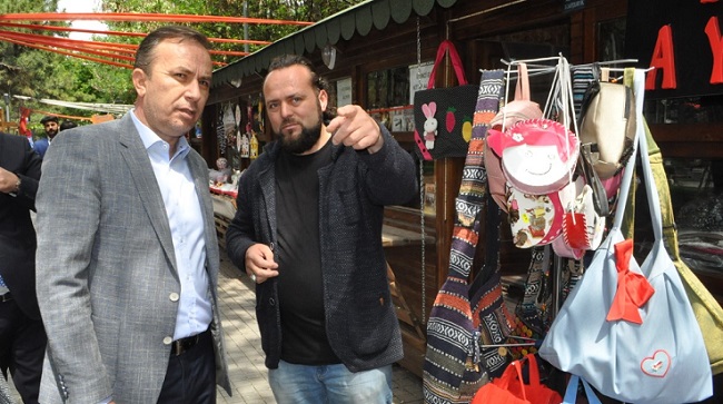AK Parti Çorum Milletvekili Ahmet Sami Ceylan, Pir Baba Parkı yanında bulunan Sanat Sokağı’nı ziyaret etti. AK Parti İl Başkan Yardımcısı İdris Keskin ve Merkez İlçe Başkan Yardımcısı Muharrem Eker’in de hazır bulunduğu ziyarette Ceylan, esnafı tek tek ziyaret ederek, yaptıkları çalışmalar hakkında bilgi aldı. Unutulmaya yüz tutmuş sanatların Çorum’a kazandırmalarından dolayı Sanat Sokağı esnafına teşekkür eden Ceylan, el emeği göz nuru eserleri de yakından inceledi. 24 Haziran seçimleri içinde destek isteyen Ceylan, doların yükseltilmesinin esnaf ve vatandaşlar arasında bir tedirgin yaratmaktan başka bir şey olmadığını ifade ederek, “Asıl hedef, bizleri parçalamaktır.” şeklinde konuştu. Aynı oyunların Rusya’da yapıldığını anlatan Ceylan, “Birlik olarak bu oyunları bozmak için sizlerin de desteğini bekliyoruz” dedi. Ziyaretlerinden dolayı Milletvekili Ceylan’a teşekkür eden Sanat Sokağı esnafı ise sokağın tuvalet sorunu olduğunu kaydederek, yardım istedi. Bunun üzerine telefonla yetkilileri arayan Ceylan ise sıkıntının biran önce çözüme kavuşturulması için talimatlar verdi.