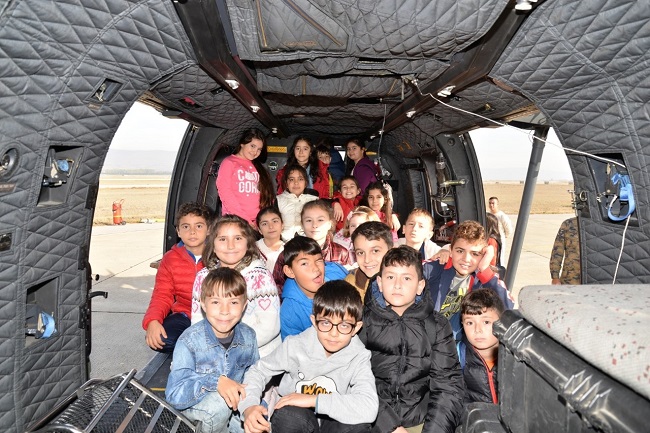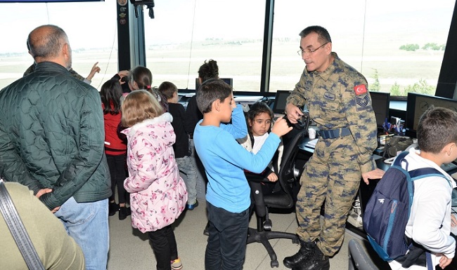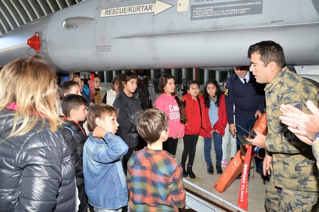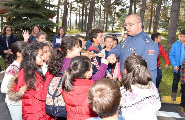 Çorum Bahçelievler İlkokulu 3-E sınıfı öğrencileri, Okul Müdür Yardımcısı Şeref Aktı ve Sınıf Öğretmeni Satı Serap Taşın rehberliğinde Cumhuriyet haftası kapsamında Merzifon 5. Ana Jet Üs Komutanlığına gezi düzenledi. Gezi kapsamında öğrencilere, ilk olarak üssün toplantı salonunda Merzifon 5. Ana Jet Üs Komutanlığının tanıtım videosu izletilerek yetkili askeri personel tarafından bilgilendirildiler. Öğrencilere tesis edilen askeri otobüs ile geçmişten günümüze hava üssünde kullanılmış olan eski uçakları, uçakların iniş kalkış yaptıkları pistleri, hangarları ve olası bir saldırı karşısında üssü koruyacak uçak savar mevzilerini tanıttılar. Türk Hava Kuvvetlerine ait savaş uçaklarını ve helikopterlerini yakından görme fırsatı yakalayan öğrenciler pilotlarla sohbet ederek merak ettikleri soruları sordular. Öğrenciler helikopter içine binerek nasıl havalandığı ve ne amaçla kullanıldıkları hakkında helikopter pilotundan bilgi aldılar. Uçak simülatörüne binen öğrenciler gerçek bir savaş uçağının içinin nasıl olduğunu tanıma fırsatı yakaladılar. Son olarak hava trafik kontrol kulesine çıkan öğrenciler hava üssünün tepe noktasından sahayı gözetleyerek radar sisteminin çalışma sistemini, uçak iniş kalkış trafik uygulamasının nasıl olduğu hakkında bilgi edindiler. Okul Yöneticisi Şeref Aktı ve Sınıf Öğretmeni Satı Serap Taşın, etkinliğin geçekleşmesini sağlayan Merzifon 5. Ana Jet Üs Komutanı Hava Pilot Tuğgeneral Tansel Çokuysal’a, Çorum Garnizon Komutanı Per. Alb. Çetin Öcal’a ve İl Kültür ve Turizm Müdür Vekili Ömer Arslan’a teşekkür ettiler.