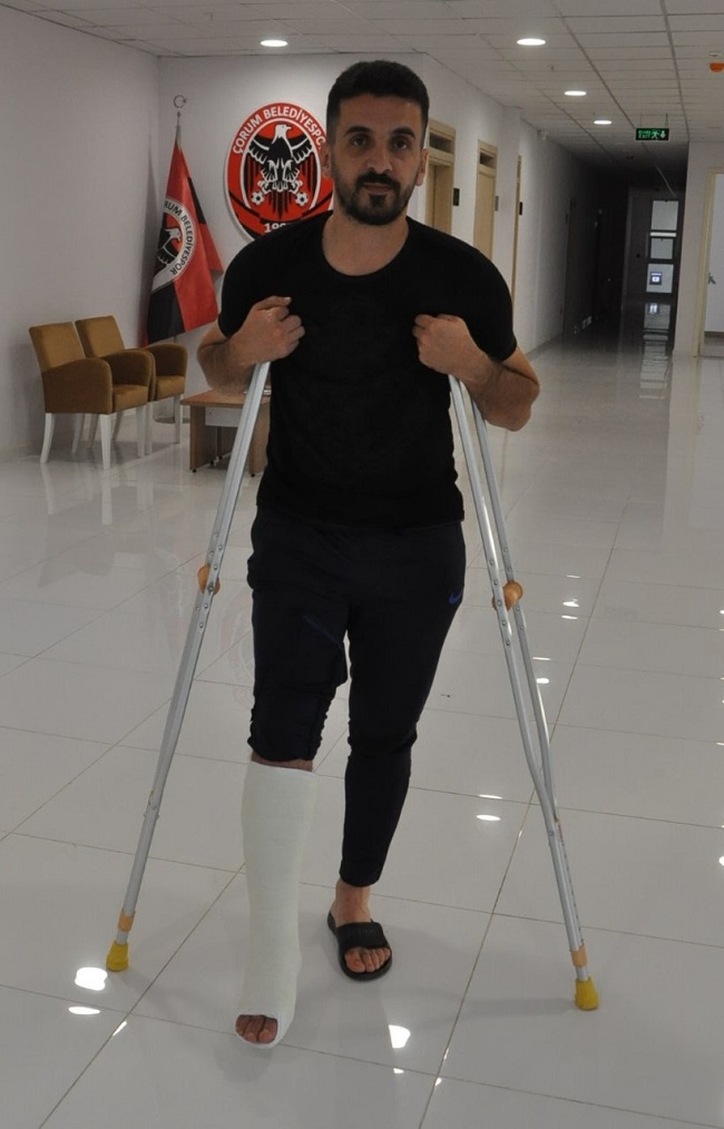 Çorum Belediyespor Genel Kaptanı Mehmet Akif Tatlı antrenmanda talihsiz bir olay yaşadı. Önceki gün antrenman bitiminde teknik ekiple birlikte ayak tenisi oynayan Mehmet Akif Tatlı, bir pozisyonda ayağını biraz yere sert basınca sağ ayak tendonları koptu. İlk müdahalesi saha içerisinde yapılan Tatlı‘nın kaldırıldığı hastanede ayağı alçıya alındı. Alçının 1 ay süreyle kalacağı ve ayağın tam olarak düzelmesi için 6 aylık bir süreye ihtiyaç olduğu açıklandı.
