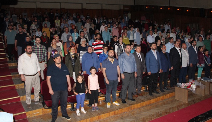 Çorum Şehit Osman Arslan Anadolu İmam Hatip Lisesi Ortaokul Bölümü Tarafından “Vatansever İmam Hatip Gençliği ve Güvenli Gelecek” projesi kapsamında 2018- 2019 Eğitim- Öğretim yılsonu “Hayal İklimindeki Kısık Sesler” adlı etkinlik düzenlendi. Devlet Tiyatro Salonu’nda yapılan etkinlikte, bir yıl boyunca okul öğrencileri tarafında başarılı bir şekilde hazırlanan materyal ve resimlerin görücüye çıkarıldığı serginin açılışı protokol tarafından yapıldı. Programa; T.C. Aile, Çalışma ve Sosyal Hizmetler Bakanlığı’da Yurt Dışı İşçi Hizmetleri Genel Müdürlüğü Daire Başkanı Halit Çağdaş, ÇORİMDER Başkanı ve ÖNDER Yönetim Kurulu Üyesi Ayhan Boyraz, Dernekler İl Müdürü Mustafa Bayrak, ÇORİMDER Yönetim Kurulu Üyesi Mustafa Külcü, Yıldırım Beyazıt İmam Hatip Ortaokulu Müdürü Yakup Duran, Okul Aile Birliği Başkanı İrfan Değirmenci, okul müdürleri, öğrenci ve veliler katıldı. Program, Ulu Önder Mustafa Kemal Atatürk ve edebiyete intikal etmiş silah arkadaşları ile aziz şehitlerimiz anısına yapılan saygı duruşu ve okunan İstiklal Marşı ile başladı.